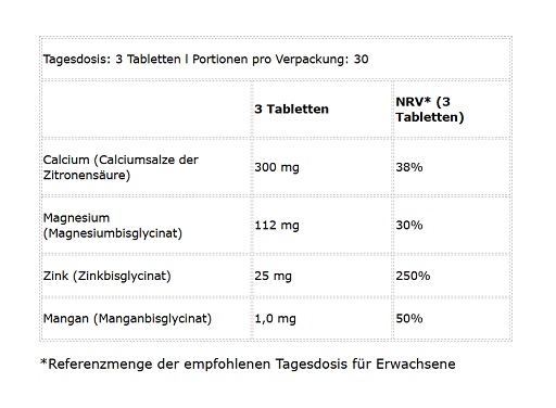 BioTech Calcium Zinc Magnesium from organic sources 90 Tabletten Menge