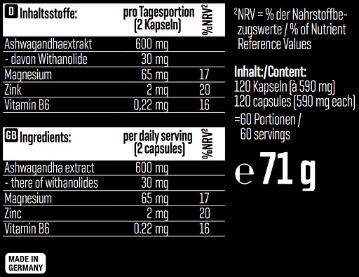 • 600 mg ASHWAGANDHA pro Tagesportion
