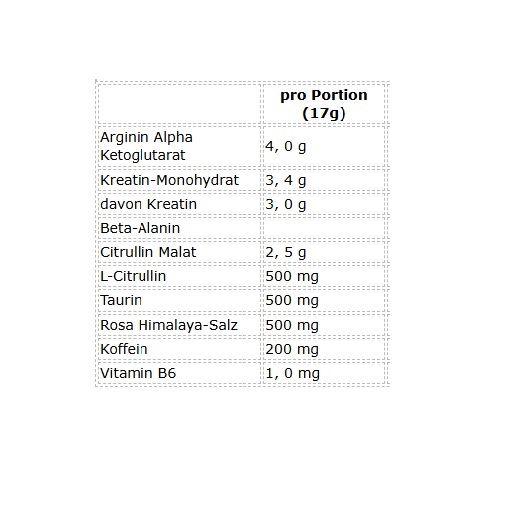 ? 4,0 g Arginin-Alpha-Ketoglutarat (AAKG) & 3,0 g Citrullin-Blend (2,5 g Citrullin-Malat 500 mg L-Citrullin) – für Pump & Durchblutung.