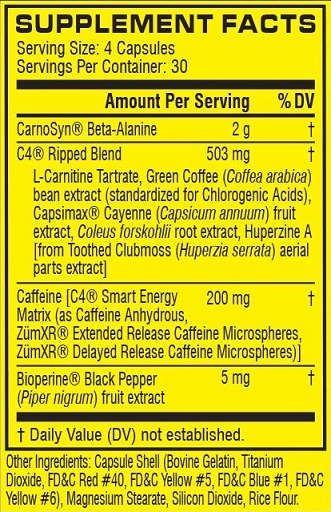 Die aktualisierte, kreatinfreie Formel enthält 200 Milligramm Gesamtkoffein in der neuen C4® Smart Energy Matrix – die Koffein mit sofortiger, verzögerter und verlängerter Freisetzung für Crash-freie Energie enthält – plus 2 Gramm CarnoSyn® Beta-Alanin.