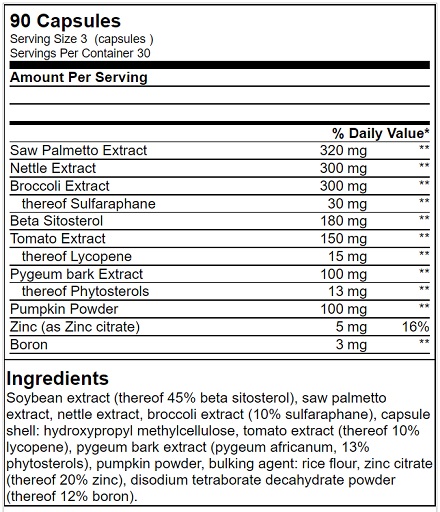 Unterstützt eine optimale Gesundheit der Prostata und kann lästigen Symptomen einer Prostatavergrößerung wie nächtlichem Harndrang, Problemen beim Wasserlassen, Inkontinenz und Prostataschmerzen entgegenwirken
