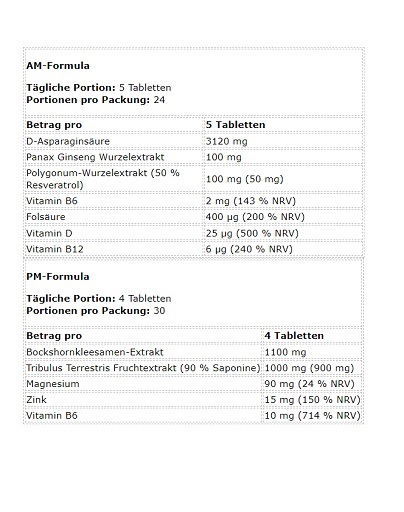 • 24-Stunden-Testosteron-Boost (AM/PM System)