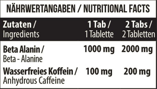 Eine Portion (2 Tabletten) enthält 2000 mg hochwertiges Beta-Alanin