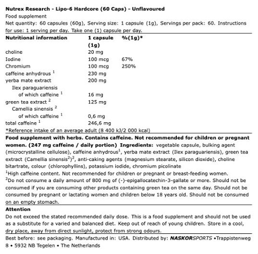 Nutrex Lipo 6 Hardcore 60 Kapseln Menge