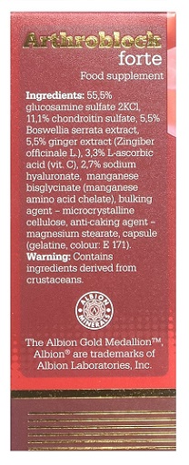 Arthroblock forte – Nahrungsergänzungsmittel in Kapseln mit Wirkstoffkomplex wie Ingwer Extrakt, Boswellia serrata Extrakt, Glucosamin, Chondroitin und Hyaluronsäure.