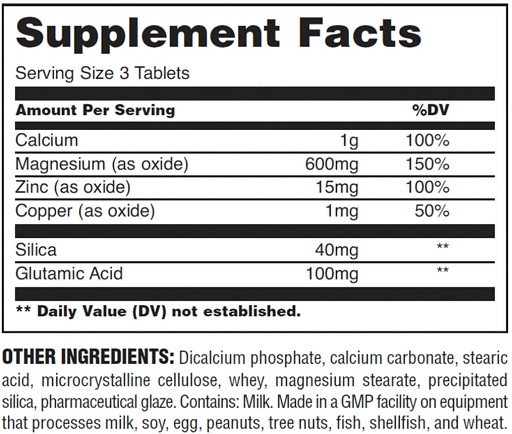 Wenn es um die allgemeine Knochengesundheit geht, ist Kalzium allein nicht genug. Deshalb kombiniert Cal-Mag-Zinc™ von Universal 1000 mg Kalzium mit den wichtigen Co-Faktoren Magnesium und Zink. Kupfer wurde hinzugefügt, um die allgemeinen knochenfördernden Vorteile von Cal-Mag-Zinc weiter abzurunden.