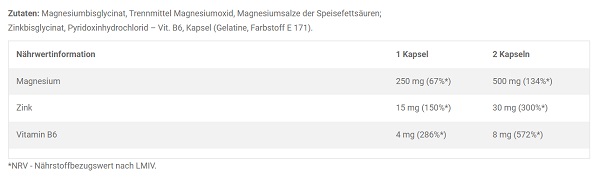 – Unterstützt bei einer normalen Funktion des Nervensystems (Magnesium, Vitamin B6) und des Immunsystems (Zink, Vitamin B6)